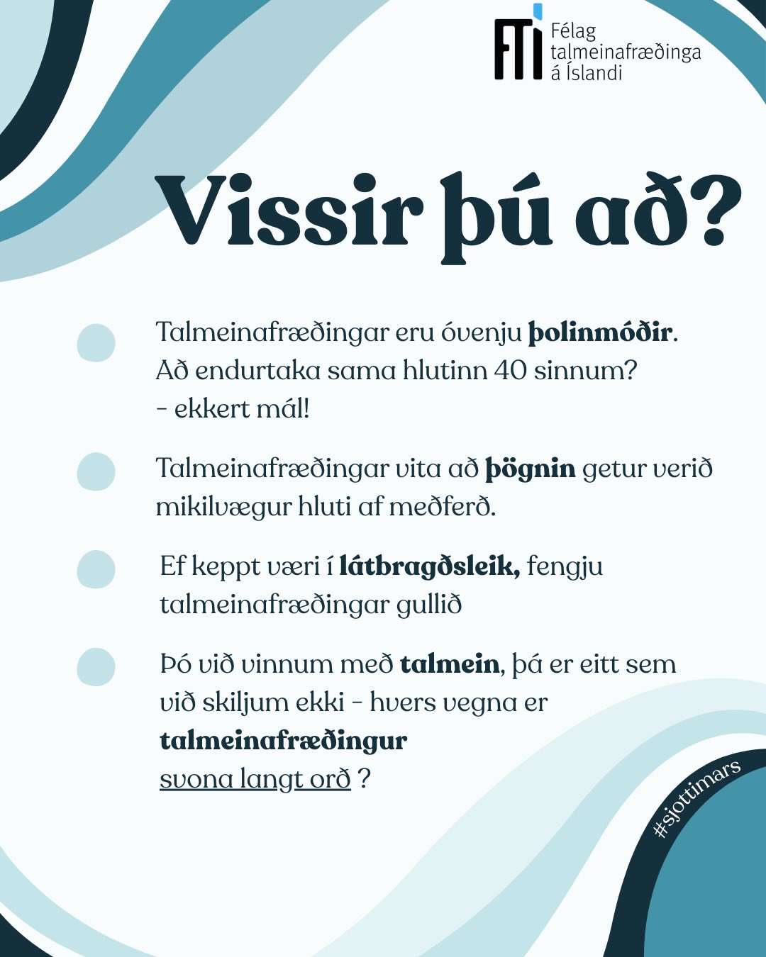 Við hvetjum alla til að kynna sér starf talmeinafræðinga og mikilvægi talþjálfunar í samfélaginu.